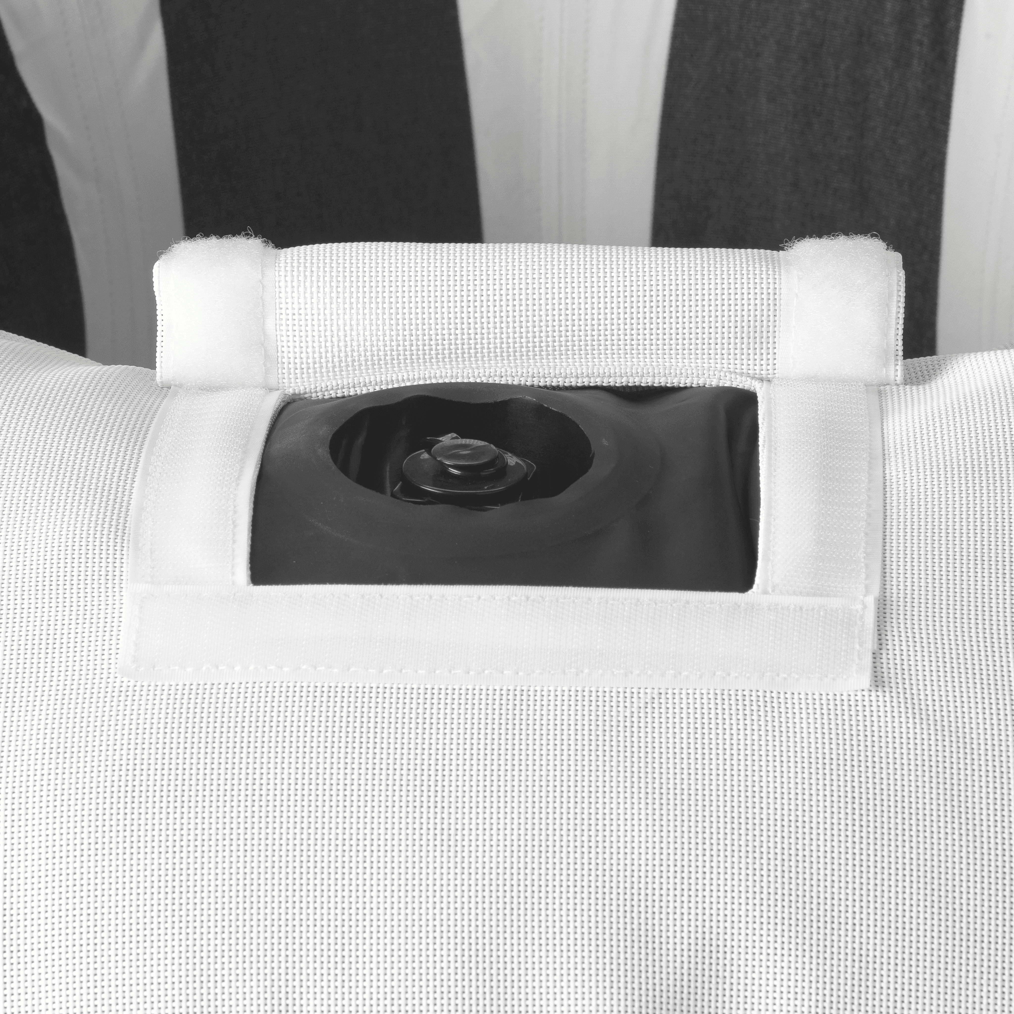 Made with Classic, a black and white striped canvas weave from Sunbrella®.