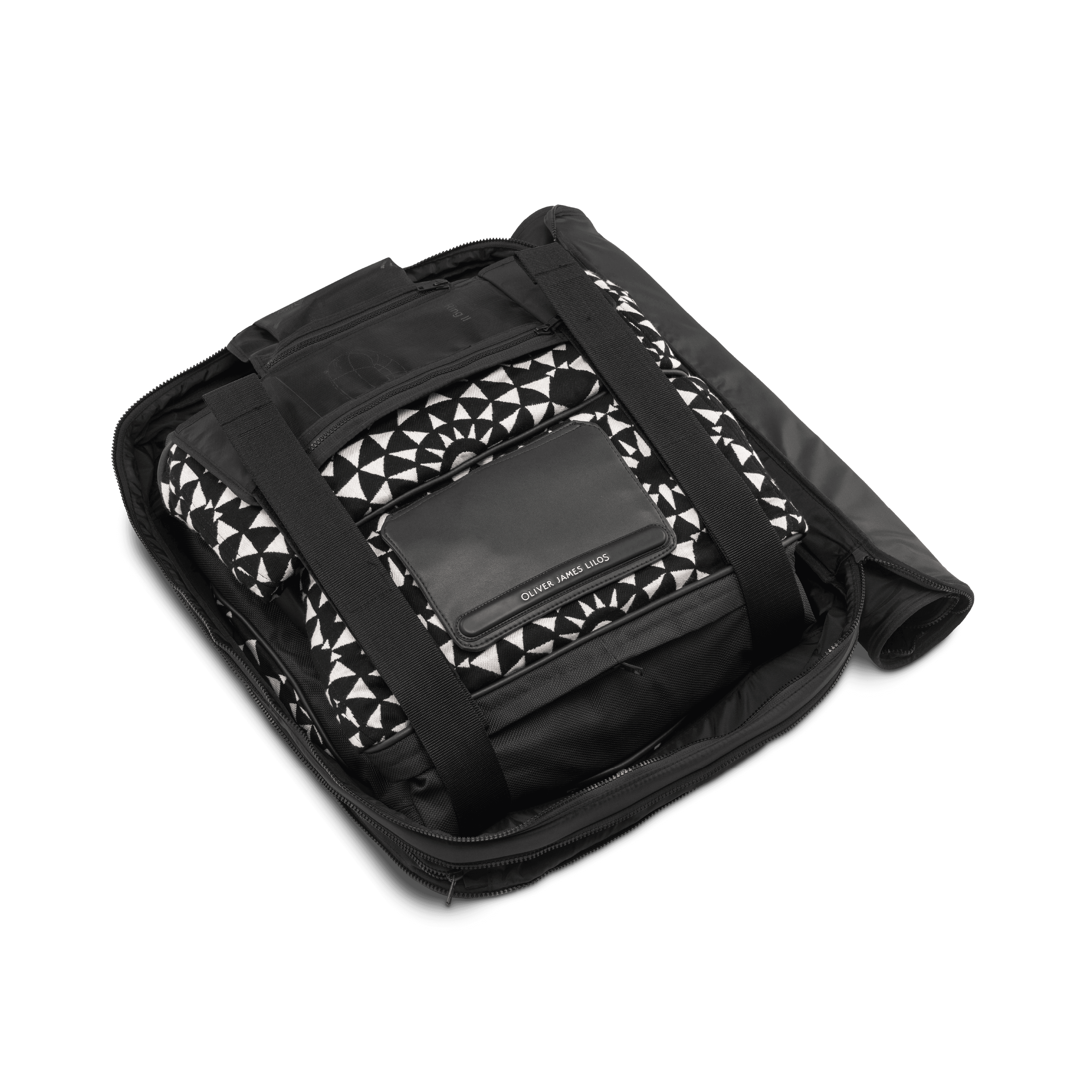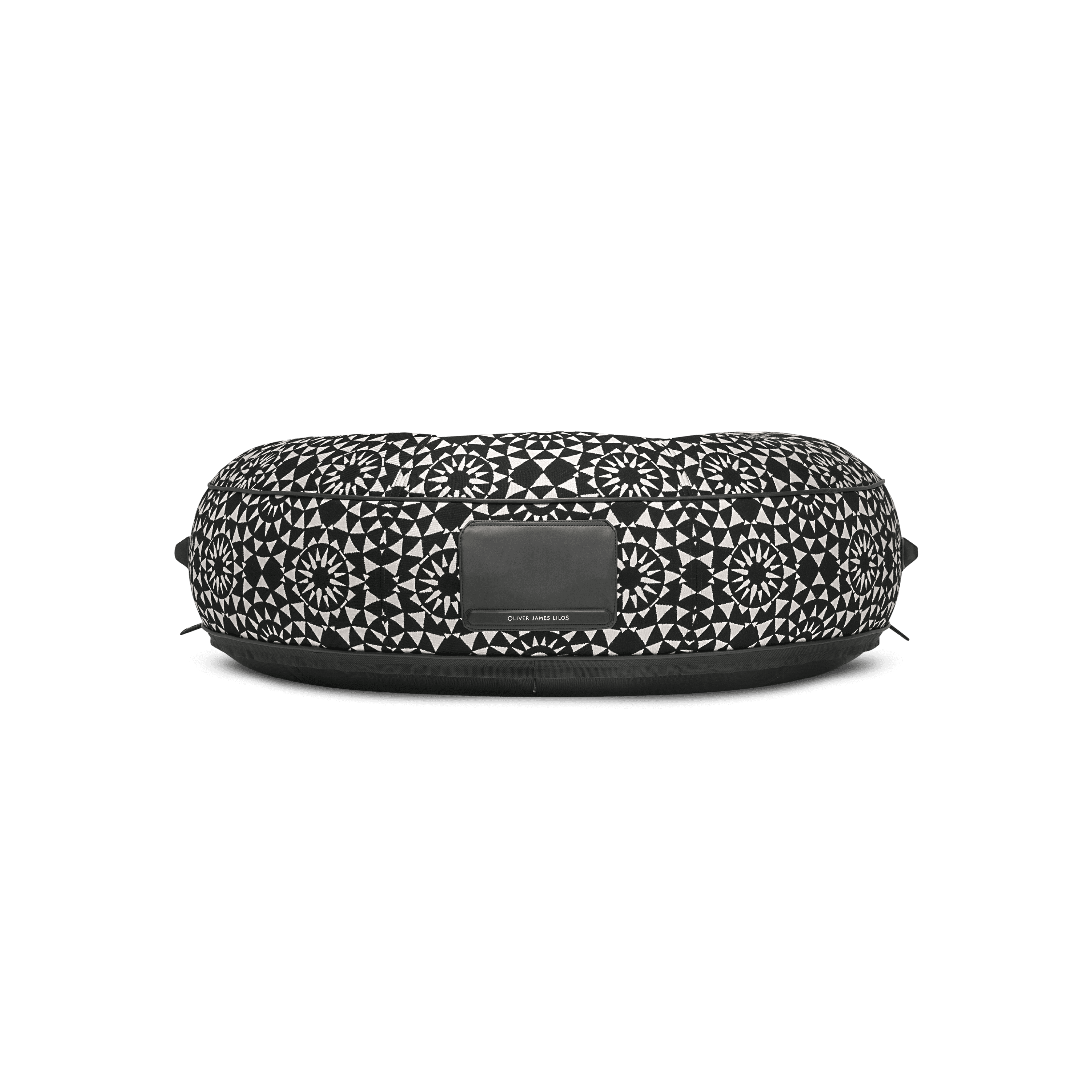 Unique from every angle. Onyx deploys a custom weave in black and white, covering the whole Lilo in a complex geometric pattern that is carefully cut to seamlessly match across the Lilo. Finished with marine-grade black leather handles, piping, and valve window atop a jet-black base.